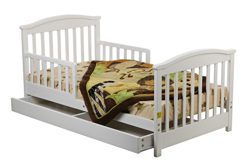 The "Top of the Line" toddler twin beds for toddlers and a real classy touch for any child's room, the Deluxe Toddler Day Bed. It is a beautiful day bed design and is built to last with a solid wood construction. It has a low profile design making for convenience and added security of an optional, removable safety guard rail to hinder accidental falls from twin beds for toddlers. You will appreciate the roomy storage area provided in the large storage drawer for clothing, shoes, blankets, etc. Comes with a wooden mattress support so there is NO need for a box spring. Non-toxic finish. It is a perfect transition for toddlers who have outgrown their cribs and they are still too small for a full size bed. Accommodates a Dream On Me crib mattress, sold separately, if needed. For children 18 months to 5 years old, up to 50 lbs. Easy assembly tools are included. JPMA Certified and meets ASTM standards. Dimensions: 54.5L x 29W x 32H inches. Visit http://www.toddlerbedandmore.com for more available finishes and colors in this bed style.